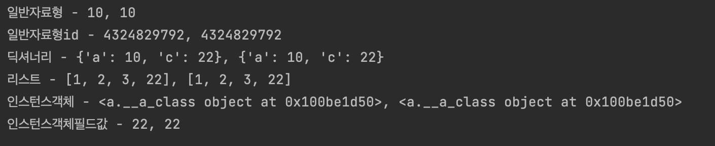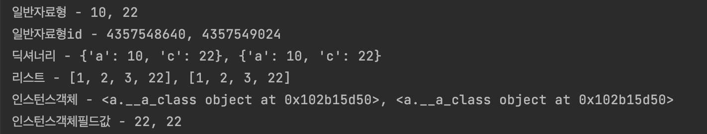 print(f'일반자료형id - {id(a)}, {id(b())}')